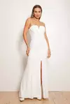 Vestido longo tomara que caia em crepe zurique e drapeado no busto.